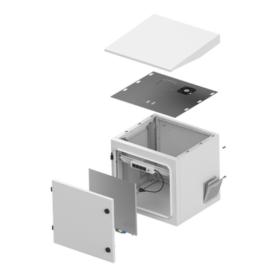 Gabinete de Exterior con Rack de 19″ de 9UR con Ventiladores y Termostato (Montaje a poste o torre se vende por separado).
