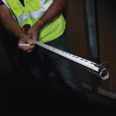 - Cinta de medición con cinta duradera, ancha y resistente y rigidez horizontal de 4 m